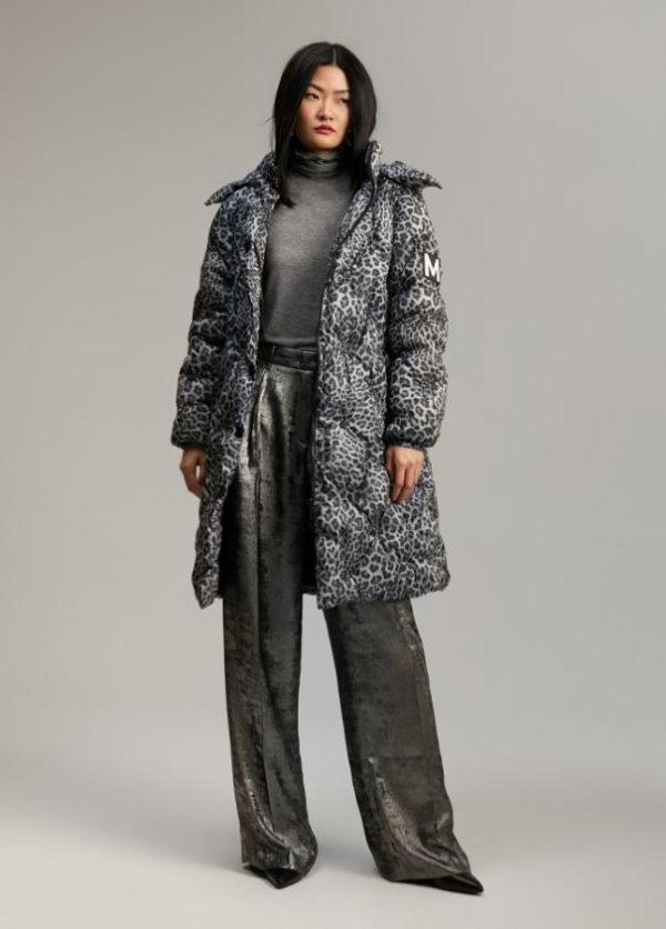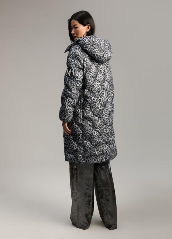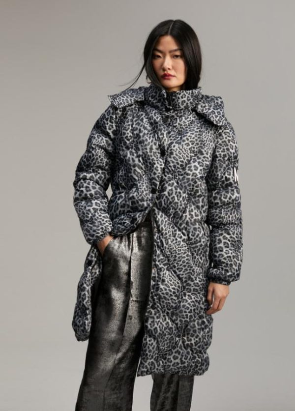 Anorak largo acolchado y con capucha extraíble. Estampado animal print bicolor. Cerrado con cremallera y snaps a tono. Bolsillos laterales. Puños elásticos. Detalle M silicona bicolor en lateral manga.