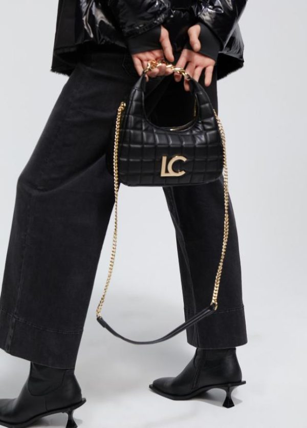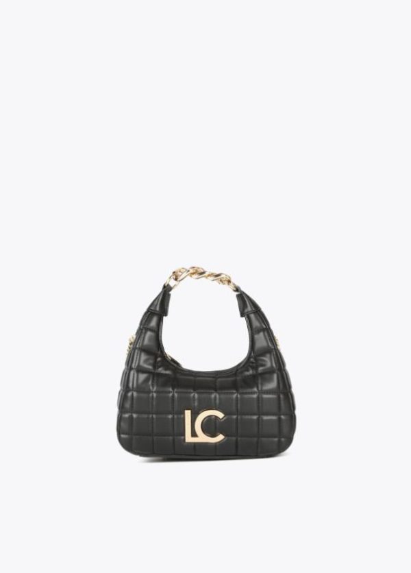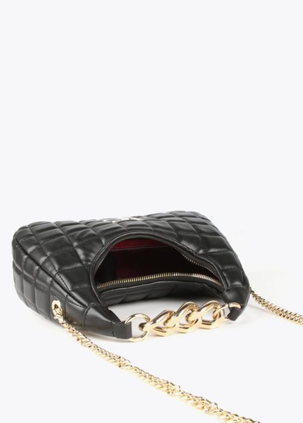 Bolsito bandolera y de hombro en efecto piel y acolchado de cuadros con detalles dorados. Cierre de cremallera.