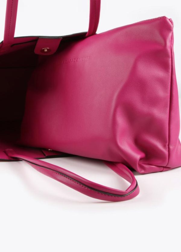 Bolso tipo shopper en efecto piel troquelado y logo lacado en parte frontal. Asas de hombro, cierre con botón imantado en lengüeta y bolsito neceser interior con cierre de cremallera.