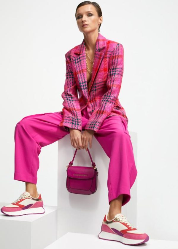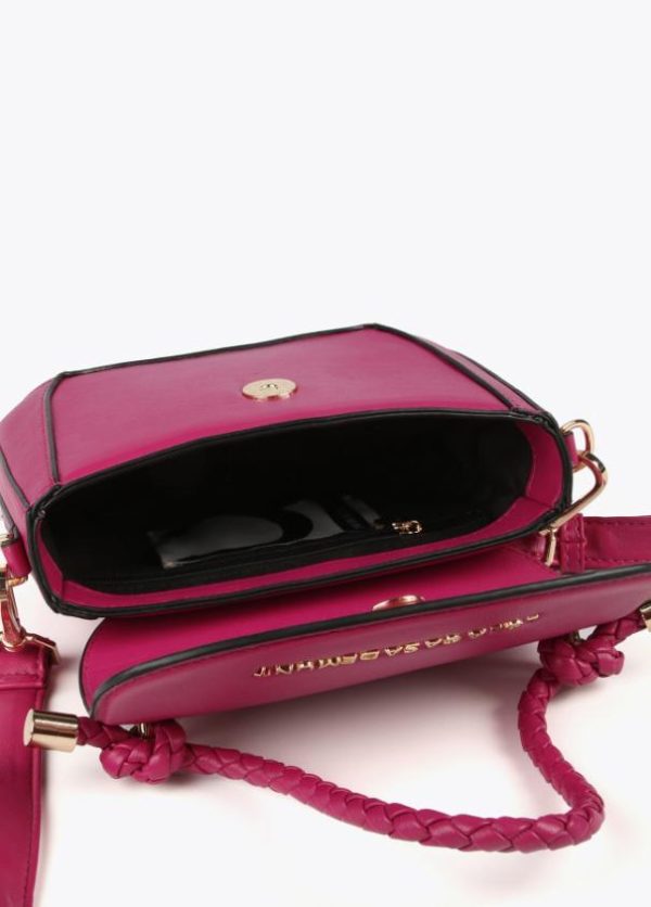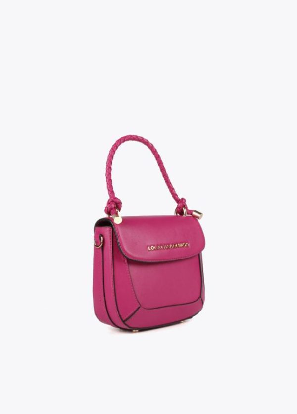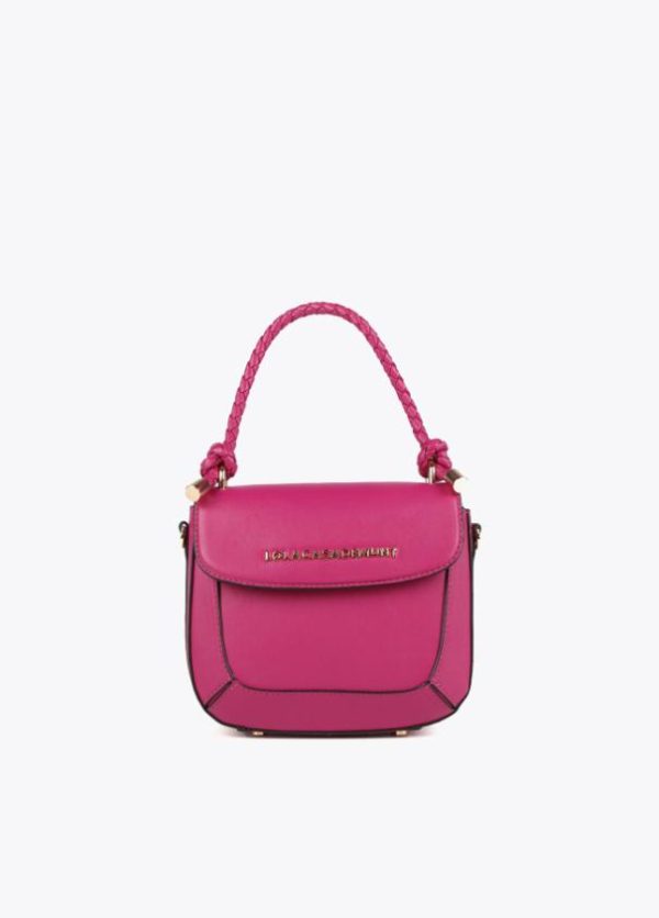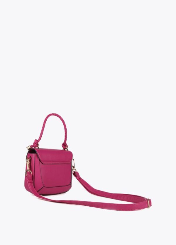 Bolso tipo bandolera en efecto piel con asa de mano trenzada y asa bandolera ajustable y extraíble. Cierre con botón imantado en solapa.