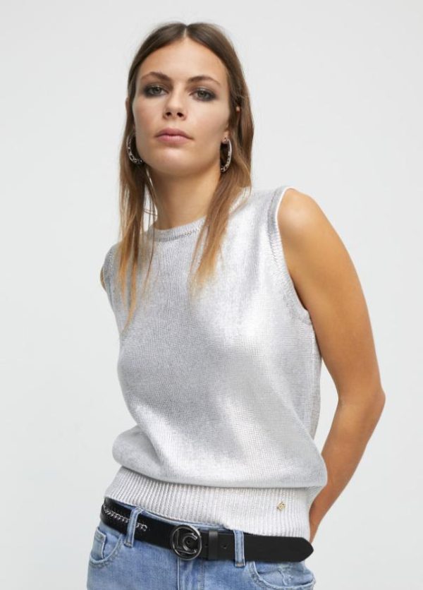 Top de punto sin mangas y cuello caja. Efecto laminado.