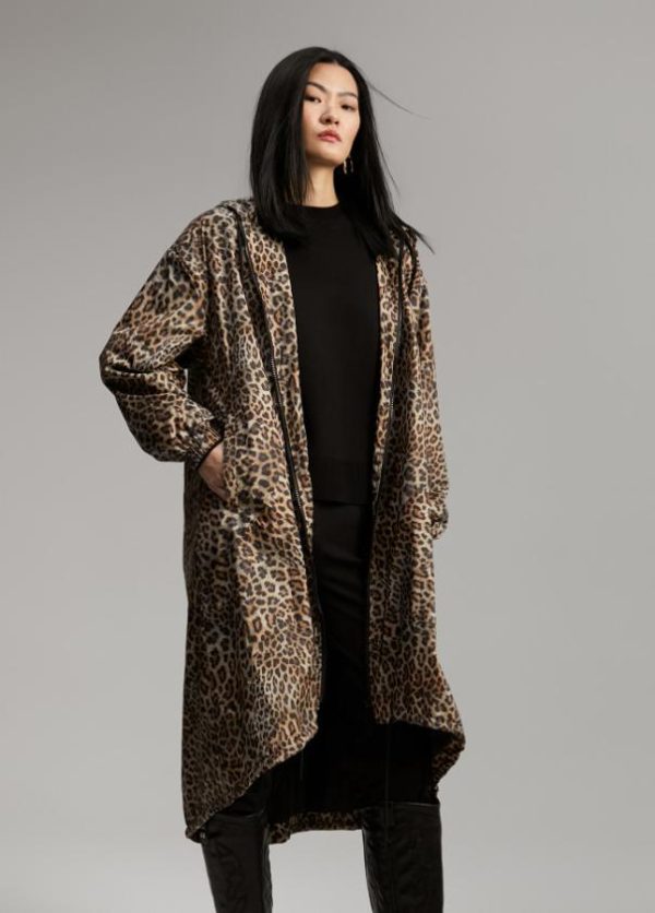 Raincoat con capucha estampado animal print. Puños elásticos. Bajo ajustable. Cerrado con cremallera frontal y bolsillos laterales.