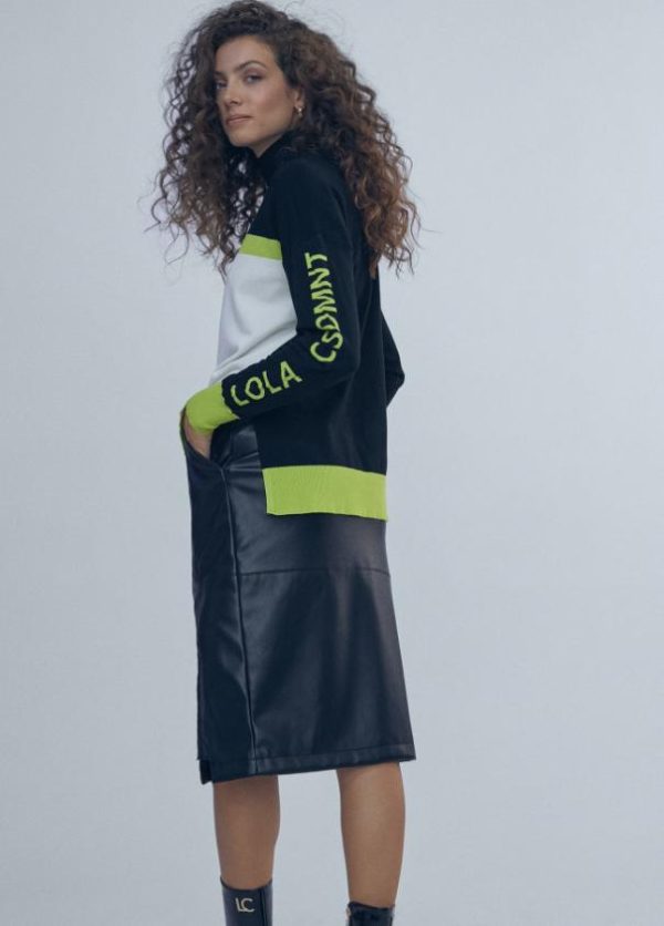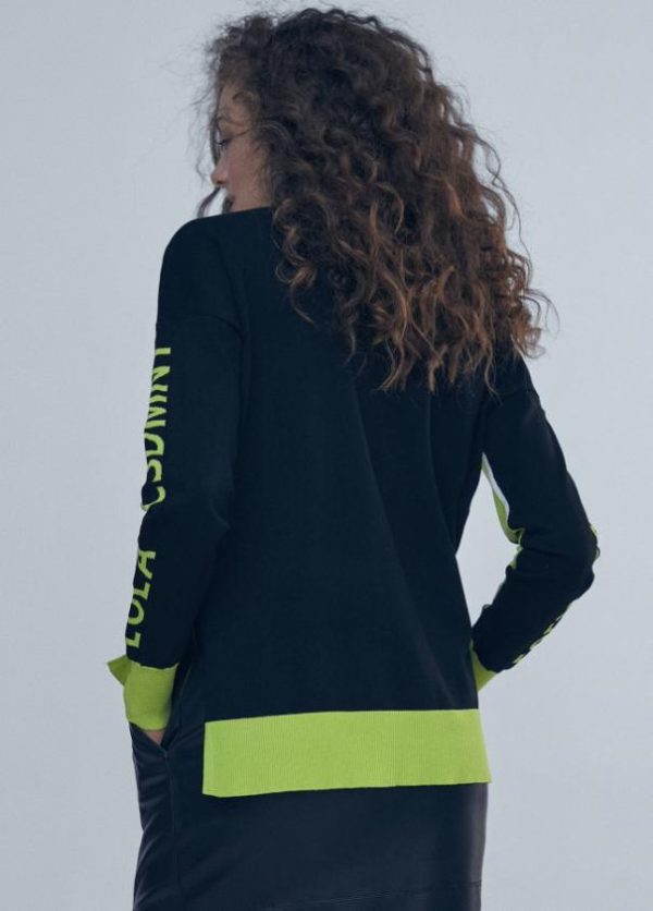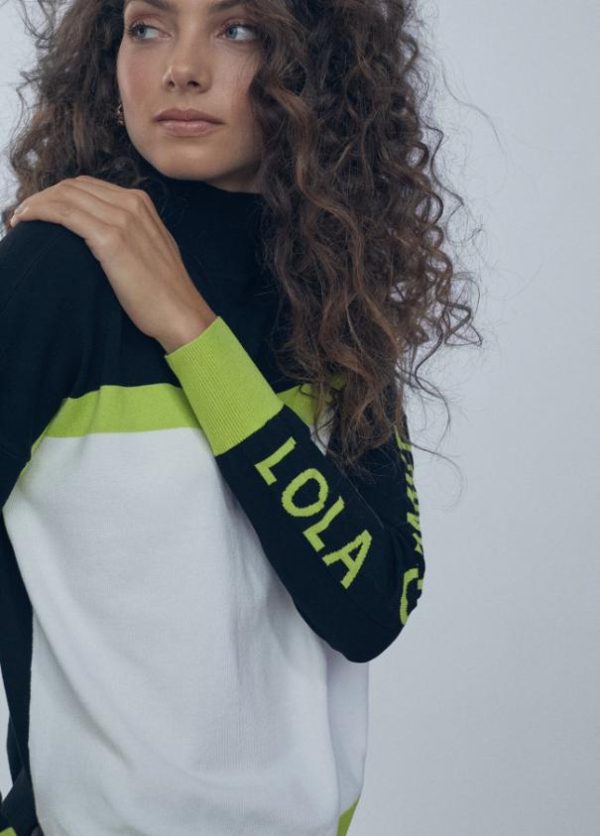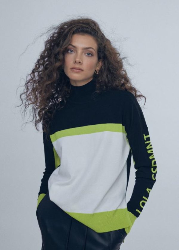 Jersey de punto tricolor. Cuello perkins y detalle en manga de logotipo a contraste.