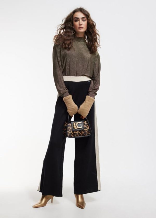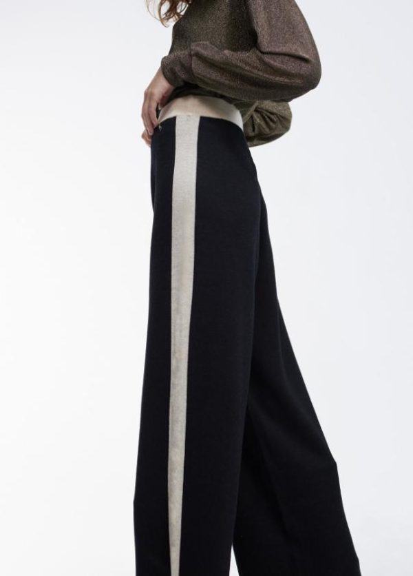 Pantalón de punto. Pierna recta con detalle a color en lateral pernera.