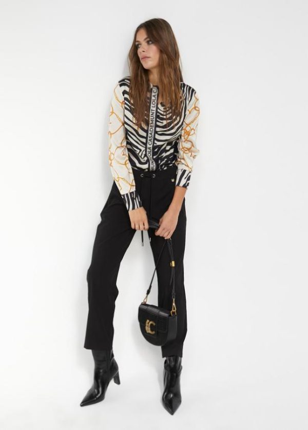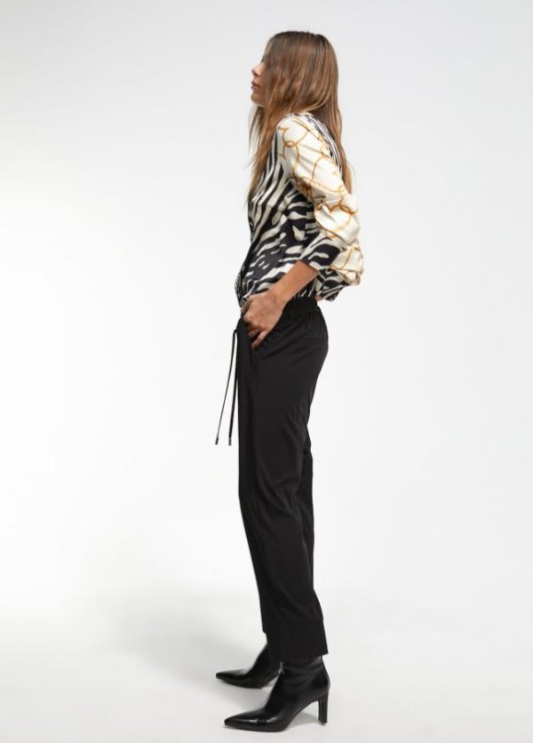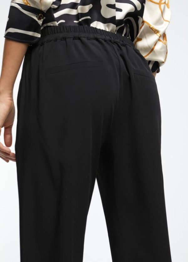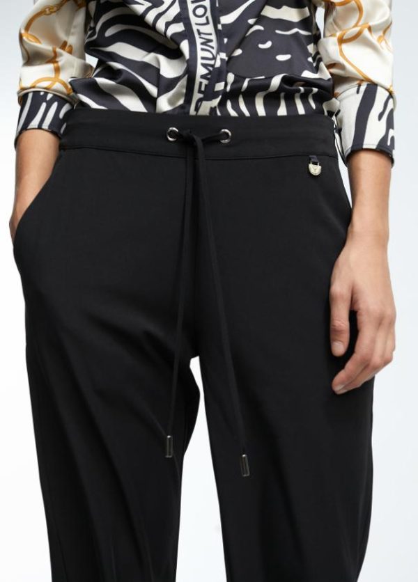 Pantalón jogger de tiro medio negro. Cintura elástica ajustable con cordones. Detalle de falso bolsillo en vivo en espalda.