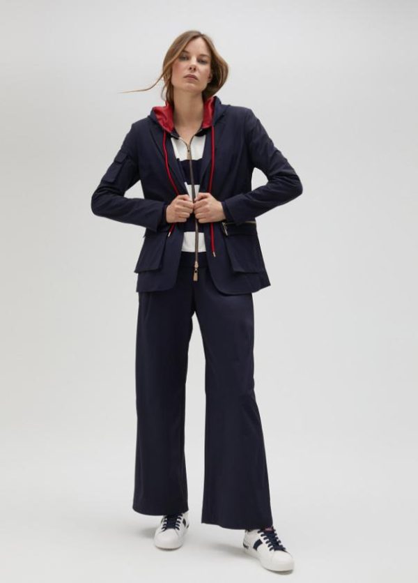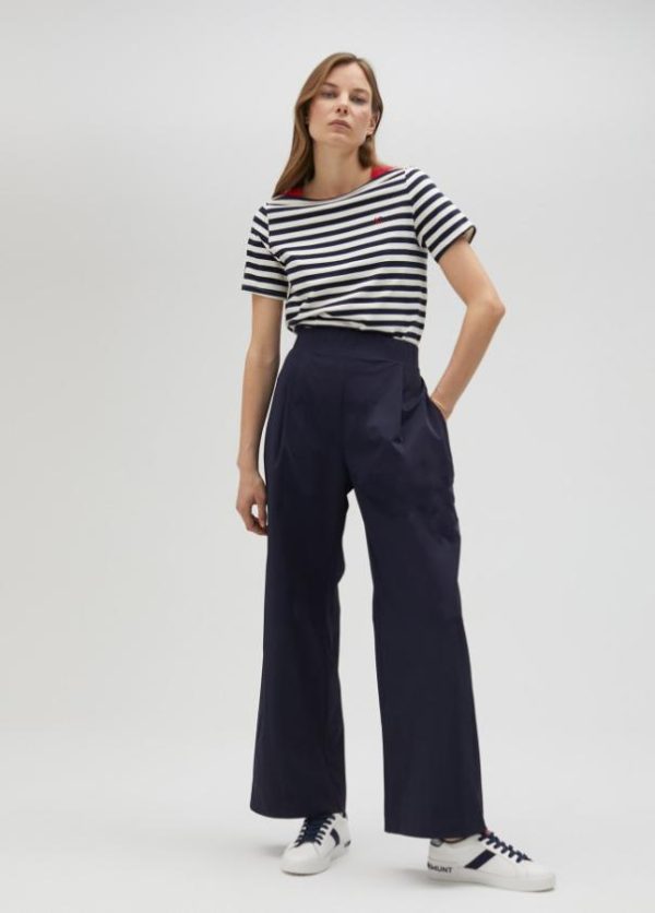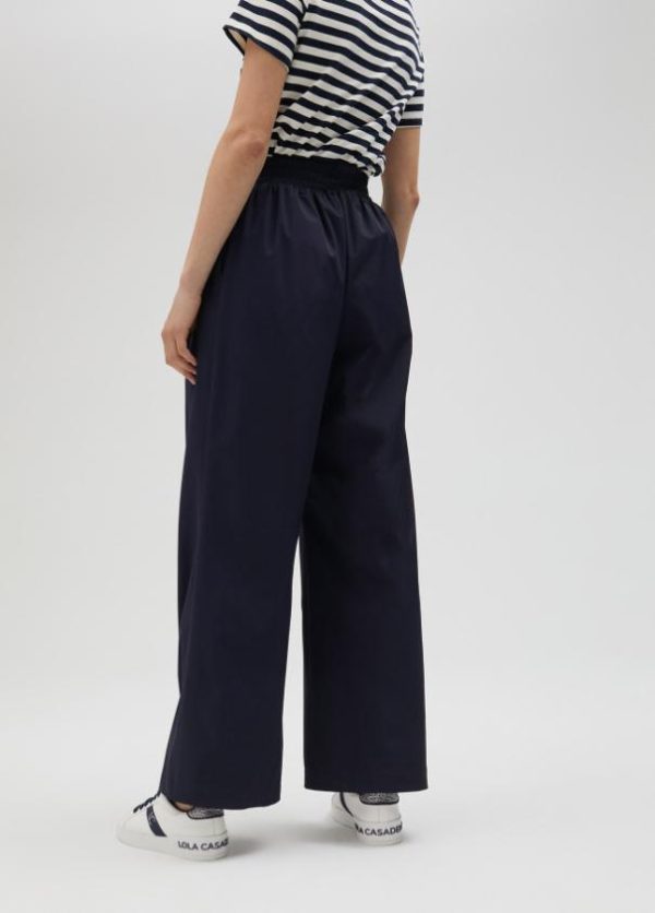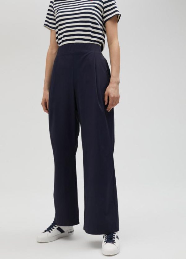 Pantalón wideleg técnico de tiro alto con cintura elástica. Pernera ancha y pinzas frontales. Bolsillos laterales.