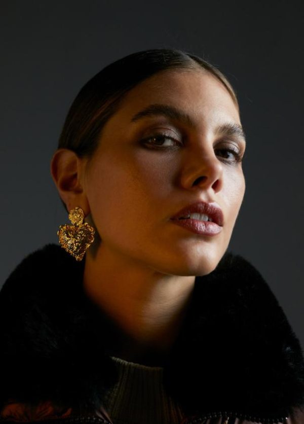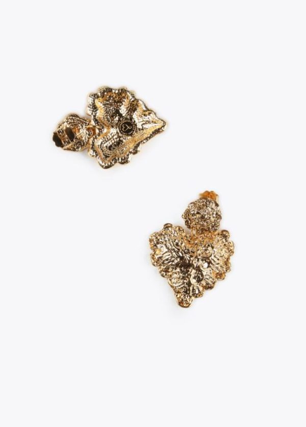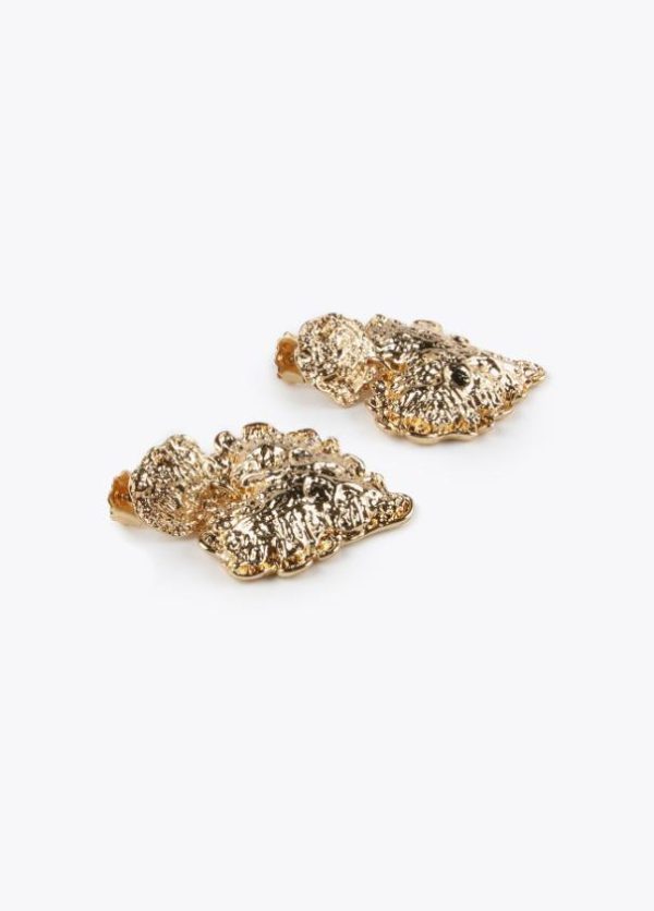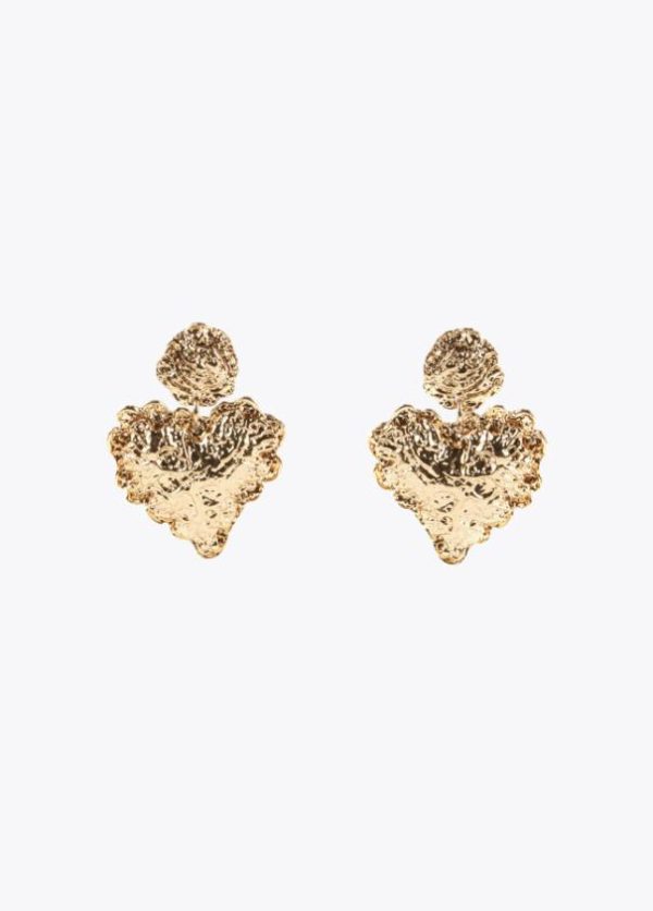 Pendientes dorados de corazón abstracto con textura rugosa.