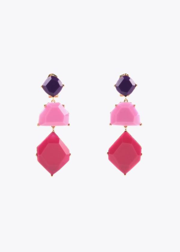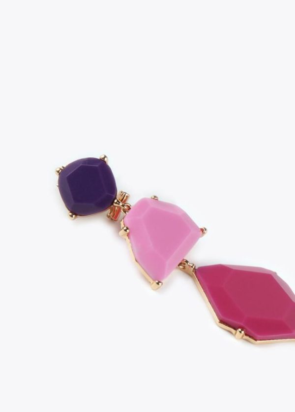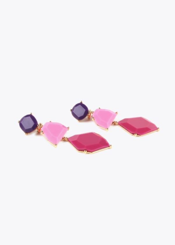 Pendientes con piedras de colores, distintas formas geométricas y engarce dorado.