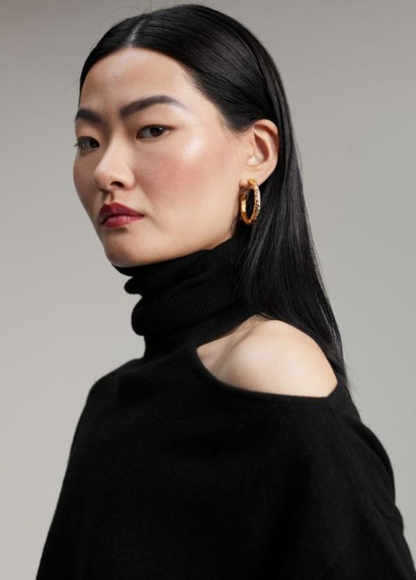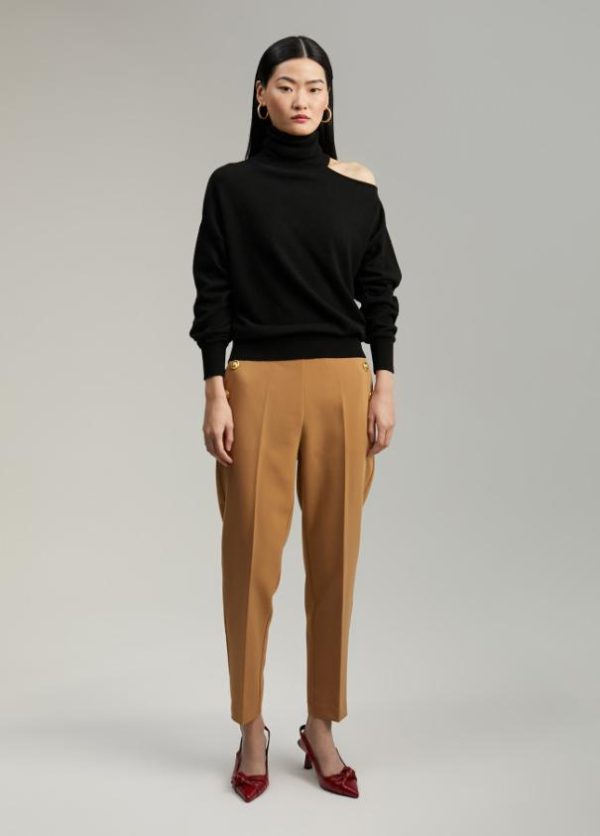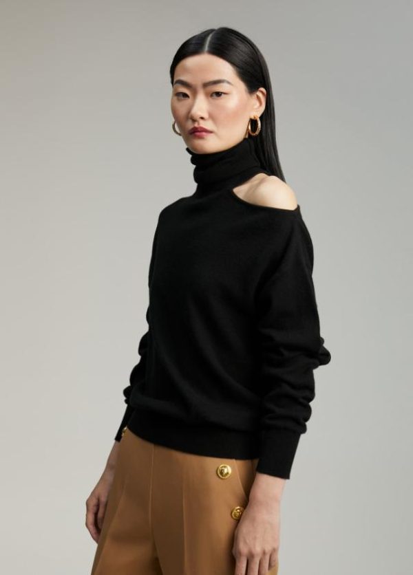Jersey cuello alto y manga larga. Detalle de abertura en hombro.